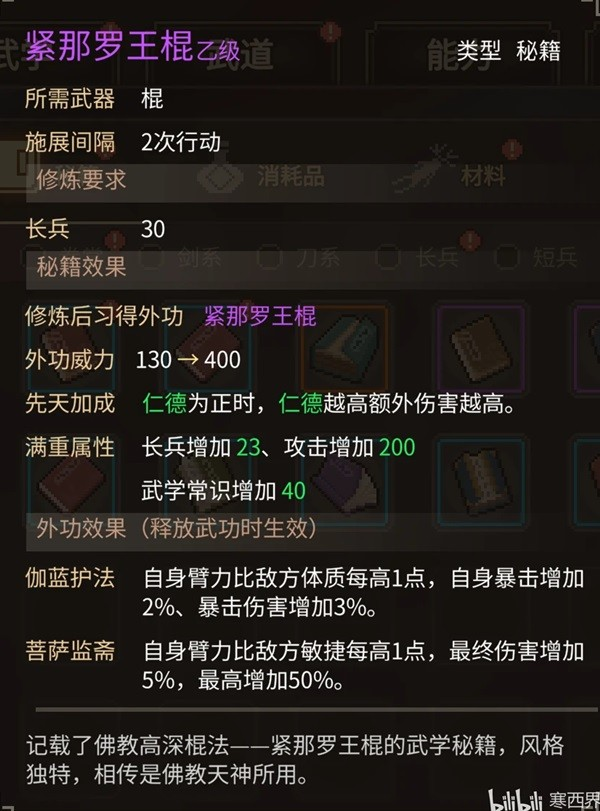 ④如果拳掌跟长兵都≧30 则随机获得【大力金刚掌】或【紧那罗王棍】【+30释愚的好感】