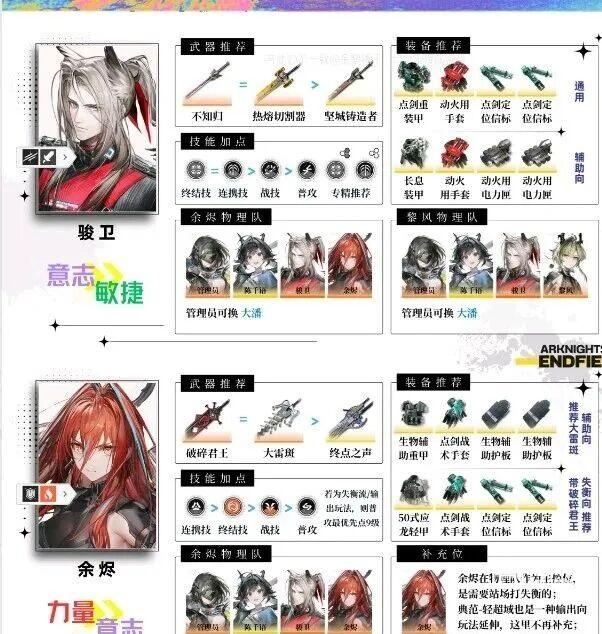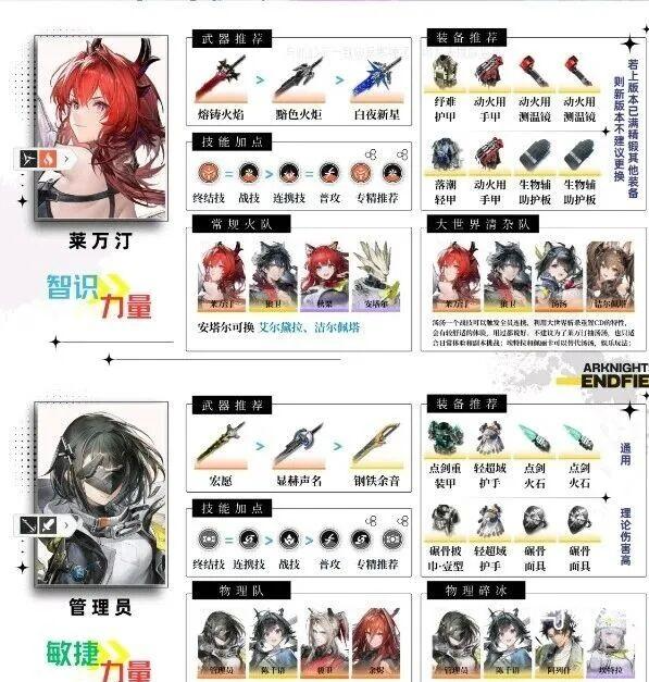 明日方舟终末地手游最新更新了1.1版本,很多角色的装备搭配和队伍搭配都有了一点变动,不知道怎么搭配的玩家可以参考明日方舟终末地1.1版本全角色配装配队推荐一图流。