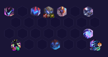 阵容初步成型以后就可以转连胜,卡50经济慢慢D,给4费卡追2星的同时,有5费卡都可以上场打工。4费全2星之后,就可以存钱上9级,把3张5费卡补全就彻底成型了。最重要的5费是蕾欧娜,一方面可以换掉武器开机甲,一方面用扎克绑定烬可以开3混沌做出关键羁绊,其余再挂稻草人和螃蟹就大成型了。