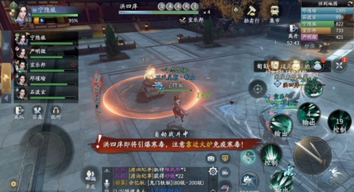 5.首先是【玄冥神掌】,是一个非常大范围的红圈,如果没跑开会叠2层寒毒DEBUFF。虽然中了一次寒毒并不致命,但是如果中了寒毒的同时还中了洪四庠的【霸道真气】,那么便会有性命之忧。