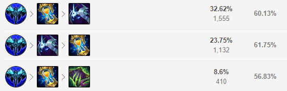 塞拉斯主要是走半肉流,永霜能够提供不错的血量和蓝量,还带有不错的控制,能够让他在中期有非常不多的战斗力。后续的装备以技能急速为主,星界驱驰可以有大量的技能急速,还能够在对拼中移速更高。中娅沙漏则是在团战中进行保命,增加容错率。