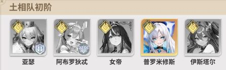 土相队:亚瑟、阿布罗狄忒、女帝、普罗米修斯、伊斯塔尔