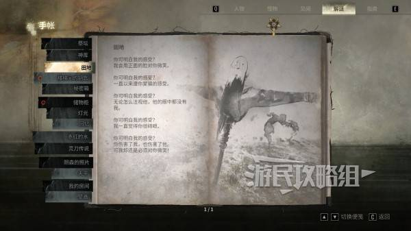 需要找到正确的稻草人并拔掉它身上的针,然后它会指向正确的行走方向。重复此步骤多次直至逃离田地。如果选错了稻草人就会被攻击。每个正确的稻草人都与每个区域的提示相关。