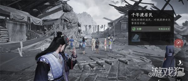 2、回到界碑,直走到神女雕像处,对白色居民使用【摄星拿月】,获得【信仰图册】。