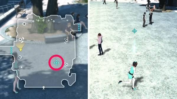 5、继续沿着任务标记到达新宿公园的标记位置:瀑布广场。
