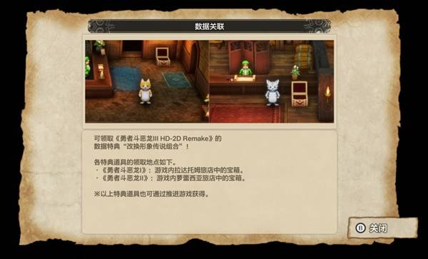 注:本特典仅适用于2024年发售的《勇者斗恶龙III HD-2D Remake》的保存数据。2019年之前发售的《勇者斗恶龙III 传说的起点…》的保存数据不在适用范围内。