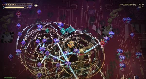 最后一层因为找不到高额单体,选择双重激光加范围伤害补足了最后一个保命节点,这个时间段面对大量敌人的DPS峰值能够达到2000+