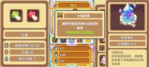 作物会有小概率发生变异出现特殊作物,玩家无法控制变异行为,但是可以通过一些幻兽技能和建筑提高变异几率。