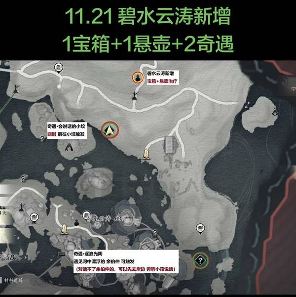 《燕云十六声》11月21上线的新版本中碧水云涛这个区域新增了一些收集品,下面是由“西西卡er”为大家带来的《燕云十六声》2.2.5A版本碧水云涛新增收集品位置一览,希望能够帮助到大家。