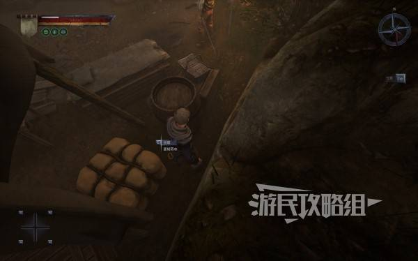 ①医生埃米特左侧木桶后方有一瓶坚韧药水,建议留着先别喝,需要从帐篷右边的床后方跳上山崖再跳到桶旁边。【坚韧+1】