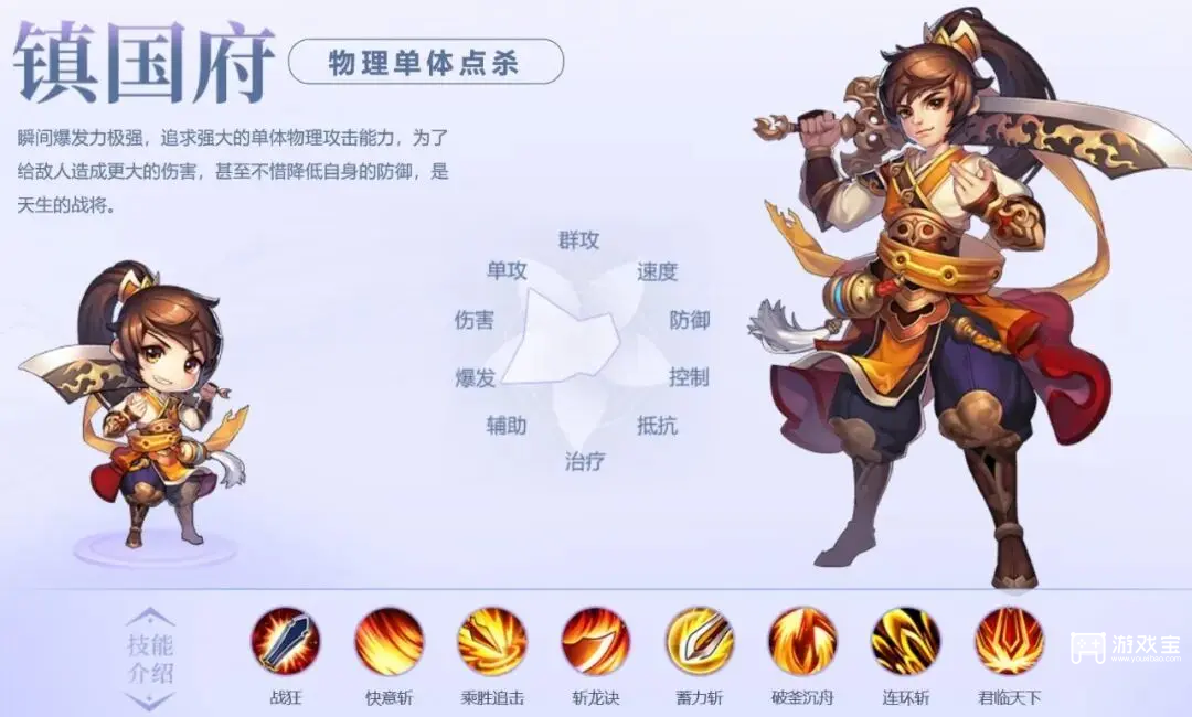 镇国府是无情的点杀能手,斩龙诀后虽需休息,但可为队友提供药品使用机会,显着提升团队配合性。