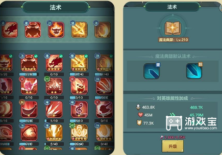 3、魔法典籍。升级魔法典籍可以提升英雄属性。
