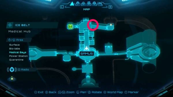 回溯至之前的大型交叉房间,解锁南侧大门并一路向南,抵达中央悬浮着巴尔萨莱系统(Balsallae System)的手术室(Surgery Bay)。走上斜坡来到系统后方的操作面板,扫描面板激活巴尔萨莱系统,再扫描已启动的系统,获取第三个密码碎片。