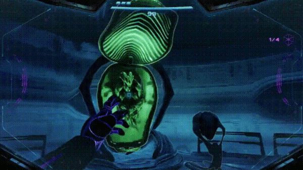 返回准备走廊交叉路口,打开西侧最后的房门并一路向西前往康复舱(Recovery Bay)。在房间后部右侧找到可击碎的通风口,跳跃通过后进入小房间,击败敌人后用火焰射击解冻冻结的显示器,扫描即可获得最后一个密码碎片。
