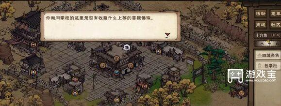 2.向包掌柜(16,9)打听「佛珠」,剧情后获得「菩提佛珠」。