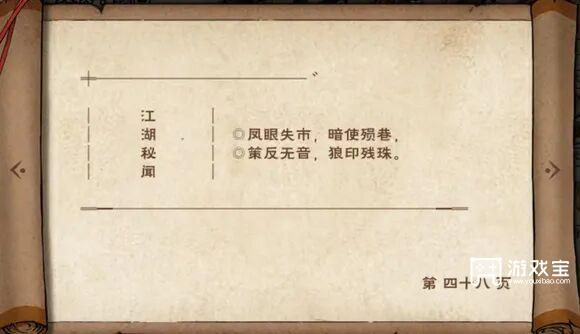 1.在藏宝阁二楼的今夕处(1,3)花费5两购买「杂谈•霜白」。(本期答案为:昆弥、恒山派、凤眼菩提)
