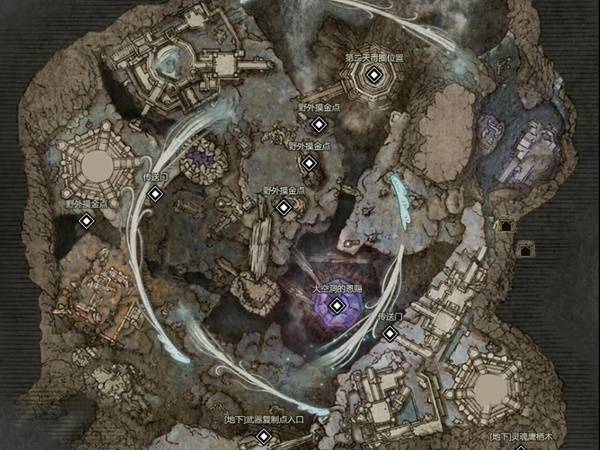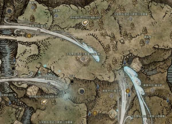 一方面,地图标注了所有随机地标可能的生成位置,让玩家提前掌握区域分布范围;另一方面,梳理了各区域的固定箱庭结构与 BOSS 池清单。
