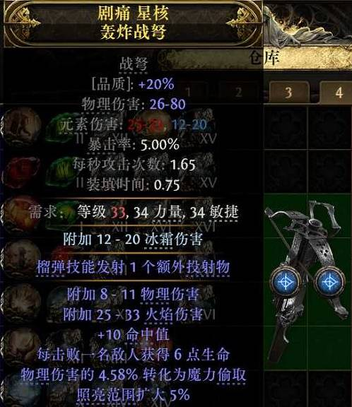 关键节点:33 级、59 级、80级会出现 “榴弹技能发射 1 个额外投射物” 的战弩底材;