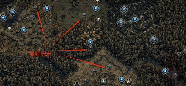 按 U 键可呼出世界地图,以第一章为例,图标带 “+” 号标记的任务为必做任务,完成后可获得永久属性天赋与抗性加成。
