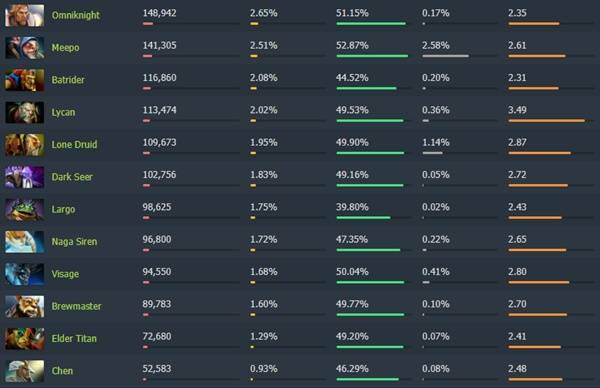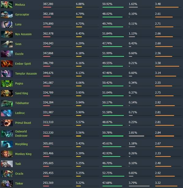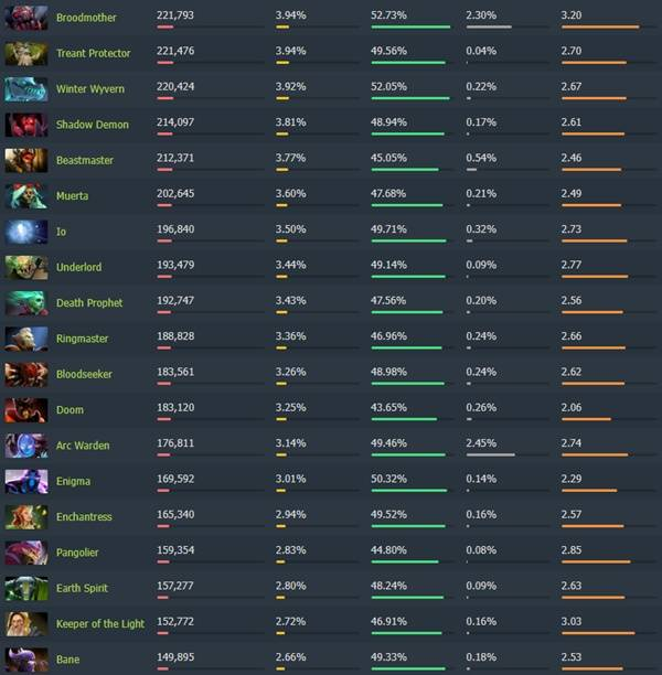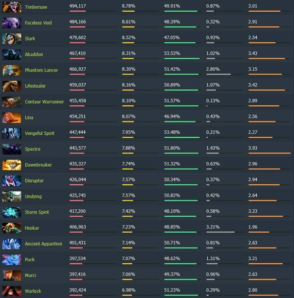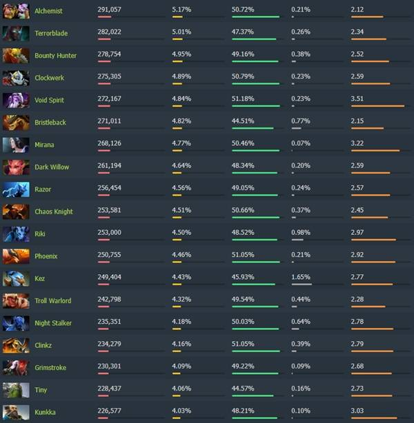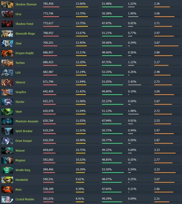 《Dota2》7.40各分路梯度排行