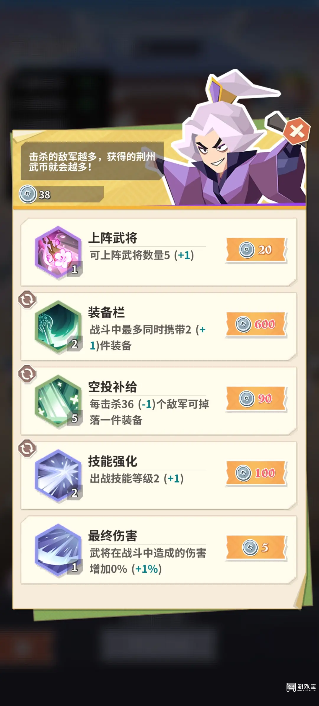 1、前期「不建议」点前三个技能也就是“上阵武将”“装备栏”“空投补给”。