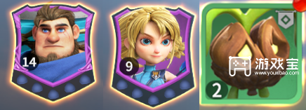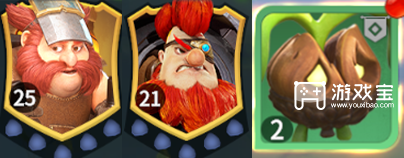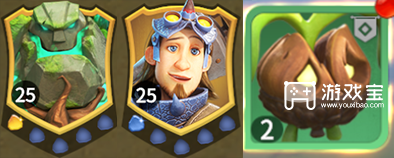 兵种:使用巨力橡果,后续军团升级就一直填充巨力橡果,也可以填充少量丧气石人吸收伤害。