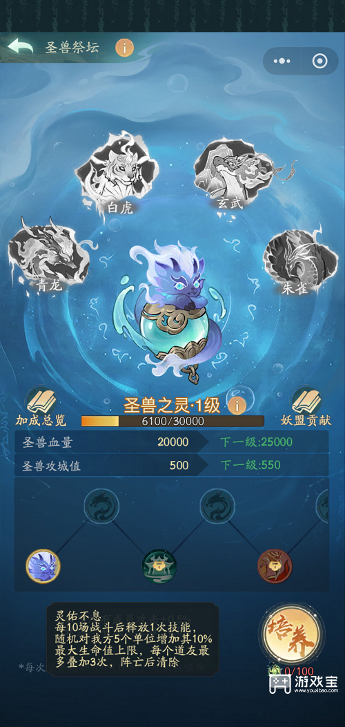 培养方式:培养道具为龙鳞果,零氪玩家可通过每日仙玉礼包+任务获取,务必拉满培养;圣兽等级建议优先冲13级,之后再大规模使用道具。