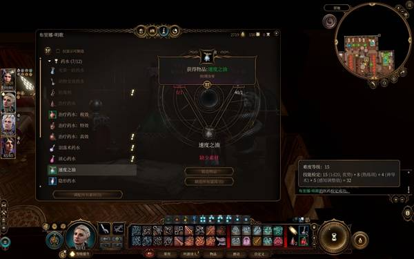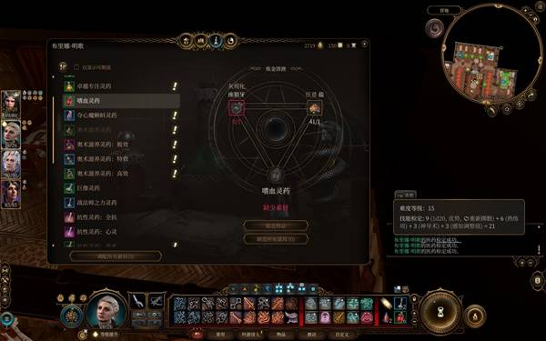 不应该反复刷,那该如何获取一些卖的比较少的稀缺灵药?可以从游戏的炼金系统入手,不少灵药虽然成品卖的少,原材料却不难获取。大家长休后在商人那里正常购物没看见成品也可以关注有无相应的原材料。炼金材料进入背包后会收纳在炼金术小袋里,不用因为没看见而怀疑丢失。