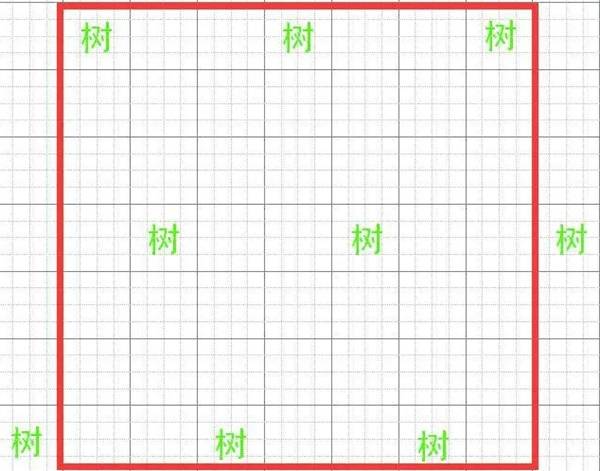 一般来说,种植一棵树需要保证其周围3*3的格子内没有任何东西(如下图)。