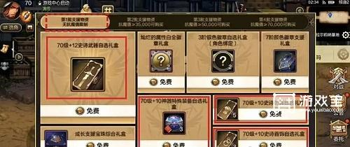 绑定后,在第一个“无抗魔要求栏”领取70级全身套装以及武器,如果是黑钻玩家可以直接穿戴!