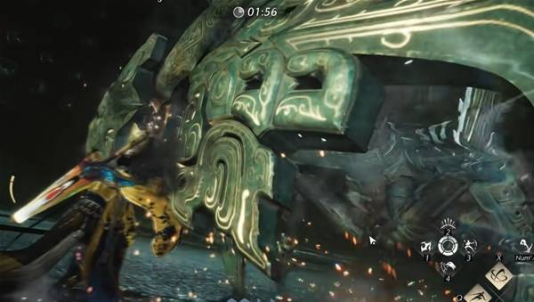 观察它的动作,双手张开,头部抖动有金光,会释放三次远程攻击,闪避躲开。