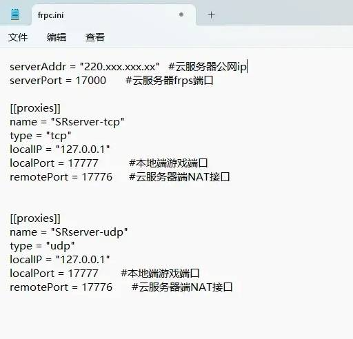 下载解压,在解压出来的frp目录,新建frpc.ini,右键编辑:
