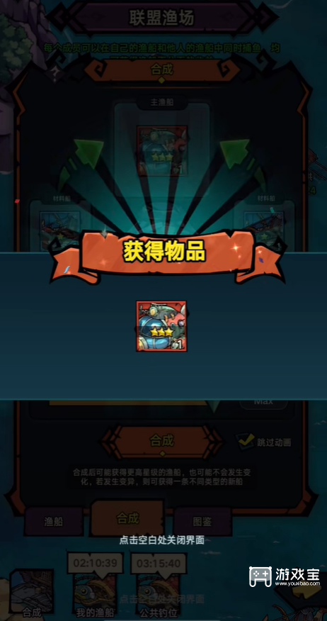 4、第四步: 一星冲浪船消耗完毕,主渔船继续上二星三星各种普通船,材料依旧一星鲶鱼船和黄鸭船,一直到合出各种一星或者二星彩船。