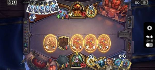 3.法术池有1费贴膜和6费召唤3个带圣盾的德莱尼。