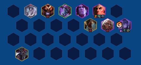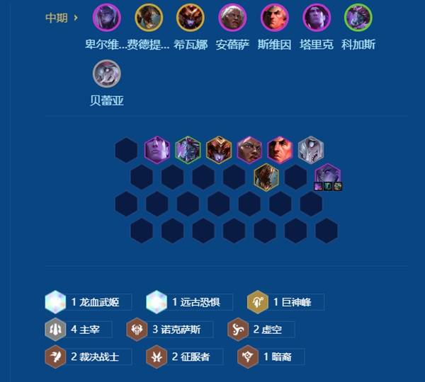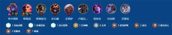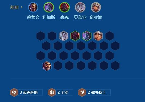 前期用裁决搭配主宰和诺克萨斯过渡,中期继续补充体系牌。(主要留好卑尔维斯装备,用其他阵容连胜或连败都可以)