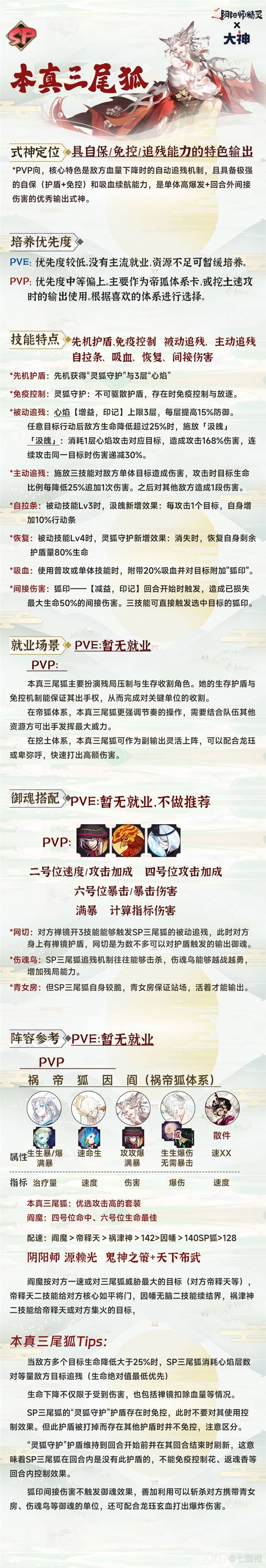 《阴阳师》真三尾狐是一名有着不错追残能力的输出式神,那么本真三尾狐要怎么培养呢?下面请看由“七面相”为大家带来的《阴阳师》本真三尾狐培养一图流,希望可以帮助到大家。