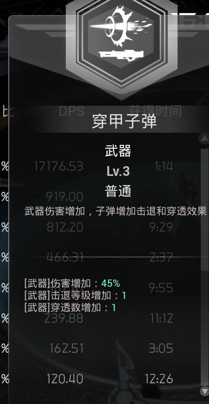 我们的核心是追击技能,武器技能其实无所谓,伤害也无所谓,点1级就行了,推荐点这个穿甲子弹,还有点击退,前期稍微安全点。