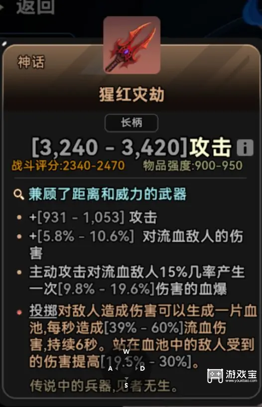 优势:作为流血体系的核心装备,猩红灾劫能显着提升对流血敌人的伤害,是输出职业的理想选择。