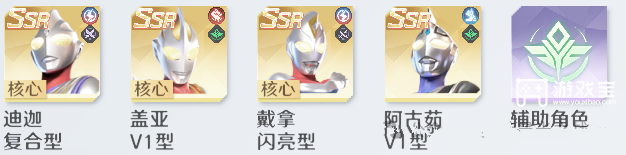 流派特点: 迪迦复合型和阿古茹V1提升队友控制命中率,盖亚V1和戴拿闪亮型频繁施加控制效果。