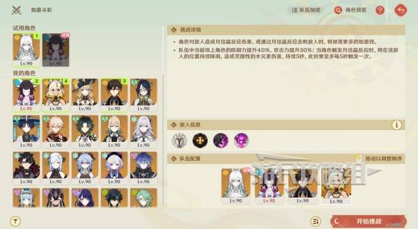 积分倍率选择10倍,或根据自身练度来酌情降低。本关可以以兹白+哥伦比娅为核心来搭配阵容,选择能够辅助兹白提高月结晶伤害的角色,例如选择爱诺挂水。考虑到主要通过兹白的普攻×4+特殊战技的连招组合来打输出,为避免兹白连招中断,建议四号位选择行秋或五郎提供抗打断。