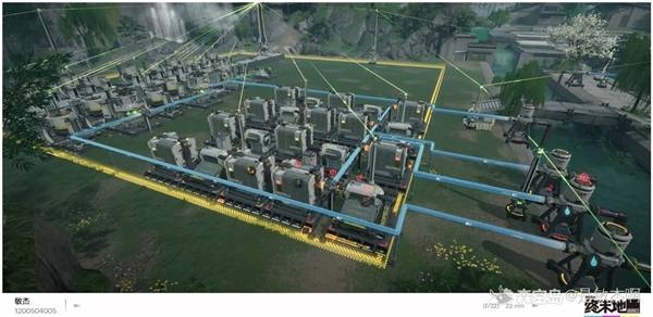 首先俯瞰模式下旋转视角,确保河在左边,左上角是种植区,包含两个种植二合一种砂叶,两个水种植二合一种芽针;在适当位置建好上下方向的仓库,在仓库左边放两个息壤一个芽针剂&息壤液,其中协议储存箱设置为仓储模式,这样就会仅生产300个息壤溶液到箱子里,需要就从箱子里拿,右边放一个低容武陵电池一个低容电池75%一个装备原件12.5%一个源石发电,不弄100%效率是为了配平息壤;然后在左边河岸建水泵把水接到水种植机 天有烘炉 反应池的液体入口,目前一个水泵供水量刚好给两个设备用,以及把砂叶放到无水种植的采种机里,芽针放到水种植的采种机里,最后根据实际情况调整发电部分。