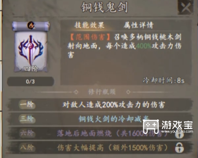 技能效果:四能量(风2+火2),六级时30%几率击飞敌人,距离远且无视抗击退效果(如BOSS)。