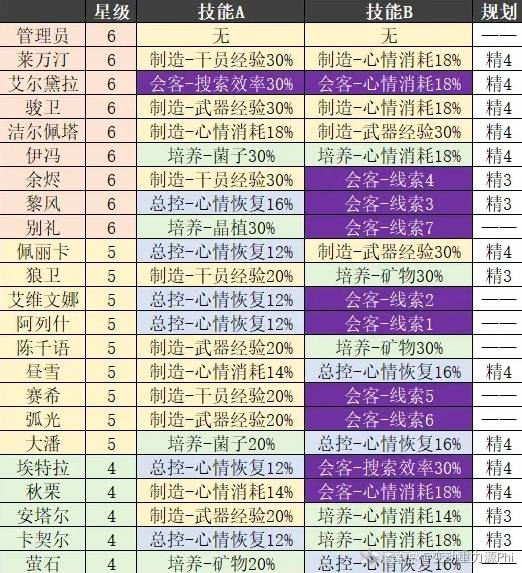 根据属性分队重新整理一下每个属性的干员放心养的表格