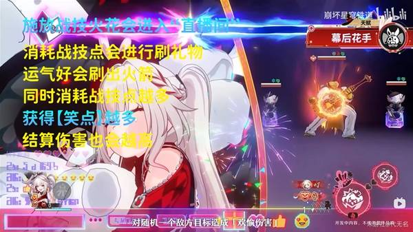火花作为首个欢愉命途输出角色,其输出方式主要靠战技进入“直播间pk刷礼物”和进入“阿哈时刻”抽奖输出