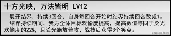 提升队伍的欢愉度,并且自身的战技和普攻都可以获得3个笑点。