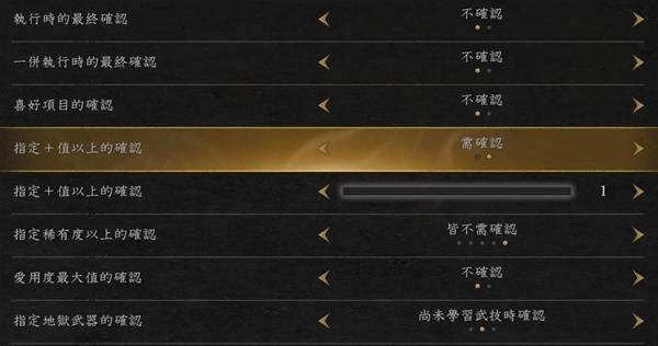 指定地狱武器的确认,设定为「尚未学习武技时确认」