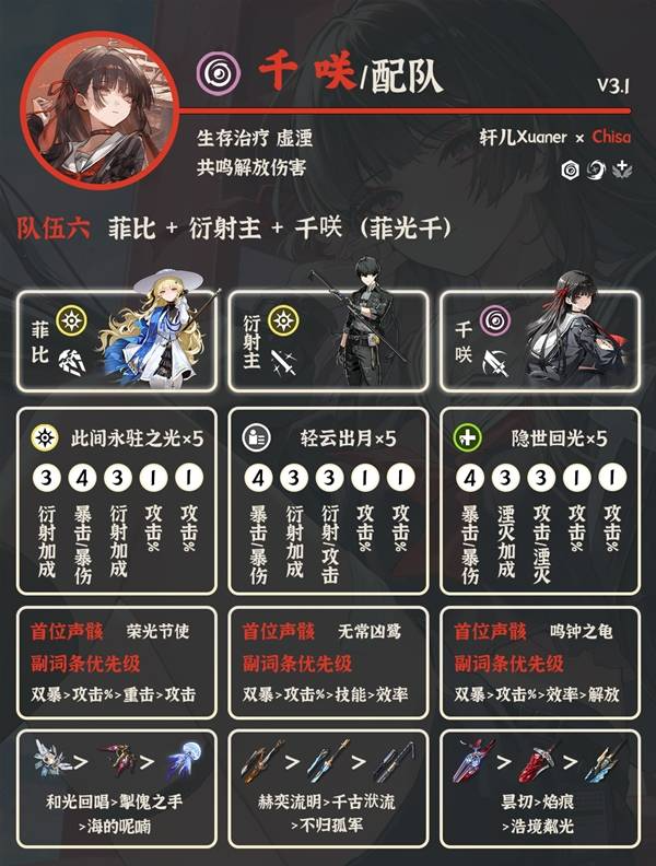 ⑥菲比+衍射主+千咲:高链菲比主C/厨子可以考虑,衍射主换夏空挂光噪也可以。