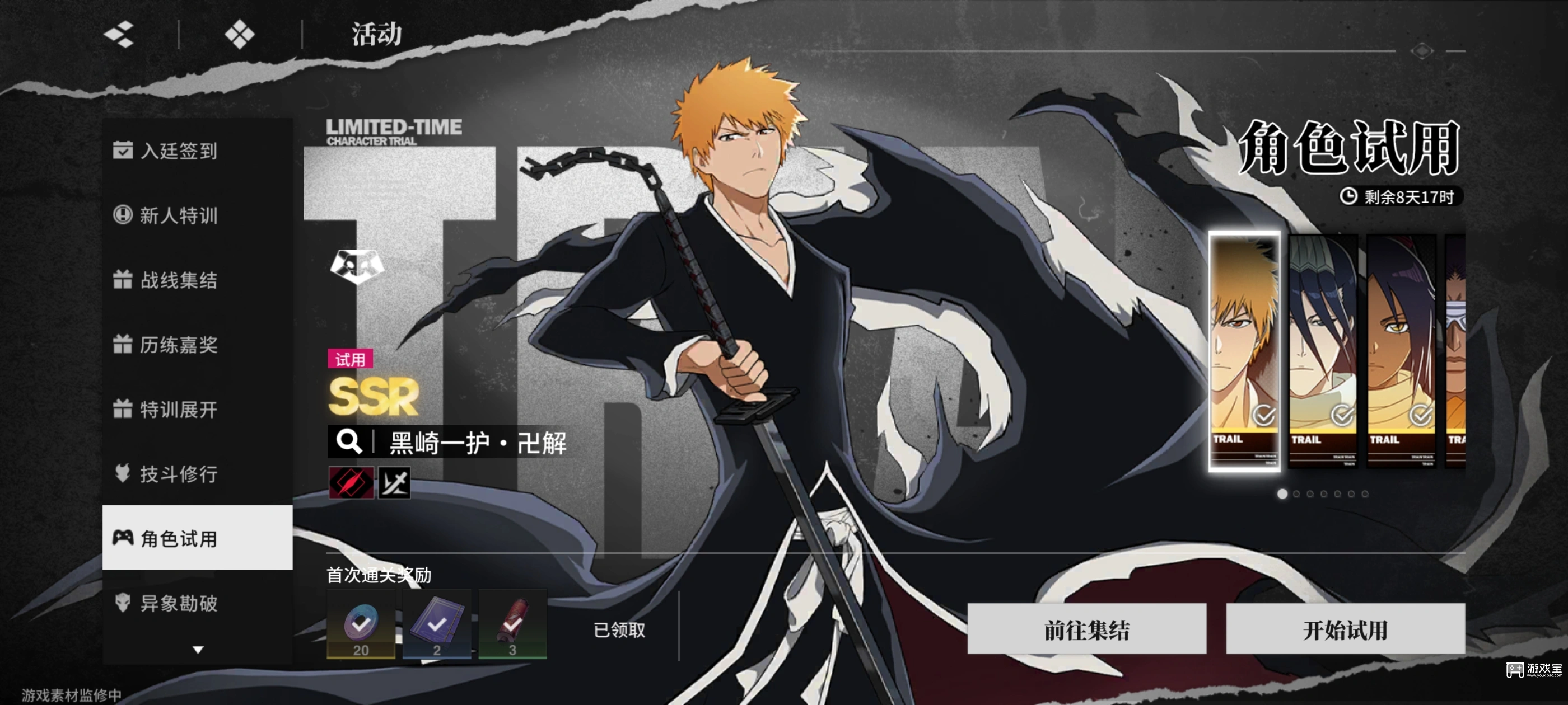 3.卍解一户:限定T2强攻,伤害集中在大招和分支,但是大招充能慢,分支又需要三段平A,容易被打断,高压环境下像个小儿麻痹,不建议抽。