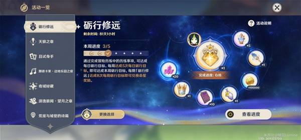 这一期正好可以用到剧诗领取的2个须臾树脂,如果这期不小心已经领过了也没有关系,之后的剧诗领取奖励的时候注意调整领取时间就好啦。