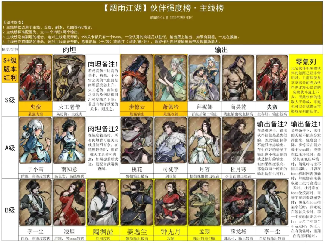 烟雨江湖伙伴强度榜一图流2026最新